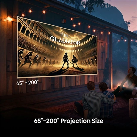 Teremtsd meg igazi moziélményt. Ez a projektor bármilyen méretű képernyőhöz alkalmazkodik 65 hüvelyktől 200 hüvelykig, így vetíthetsz a nappali falára vagy egy óriási vászonra a kertben.