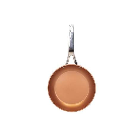 Serpenyő, 24 cm-es átmérővel, kovácsolt alumíniumból, tapadásmentes bevonattal, mely titánból, zafírból, gyémántból és rézből áll össze; teljesen károsanyag-mentes, nem tartalmaz PFOA és PFOS anyagot. Karcálló, teljesen egyenletes, sima felület. Nagy ütésállóssággal bír, nem deformálódik. Rozsdamentes, hőálló nyéllel. A serpenyő indukciós, melynek köszönhetően a hő egyenletesen oszlik el, és ellenáll a hőingadozásnak. Minden főző felülettel kompatibilis. Különleges, kovácsolt külső, réz árnyalatban. Kiváló hőtartással, mosogatógépben mosható. 100% bio újrahasznosítható csomagolásban.