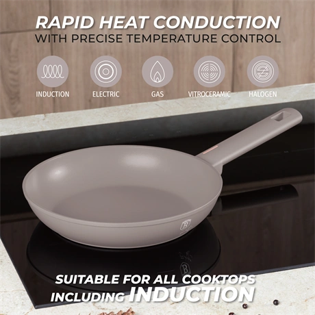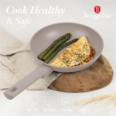 A matt taupe szín elegáns és modern megjelenést kölcsönöz a serpenyőknek, amelyek bármilyen konyhai berendezéssel harmonizálnak.
