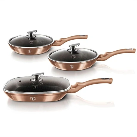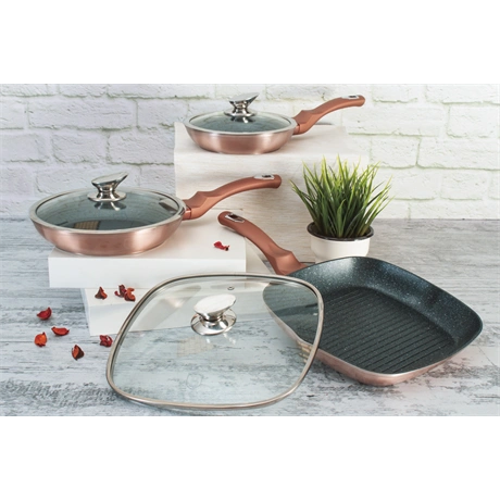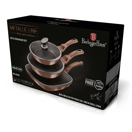 A 6 részes serpenyő szett a Metallic Line Rose Gold Edition család tagja, amely a konyhai eszközök világában a stílus és a funkcionalitás tökéletes egyensúlyát képviseli. Ez a szett nemcsak a főzés élményét emeli új szintre, hanem a konyháját is feldobja elegáns megjelenésével.