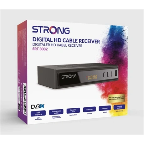 Számos kábelszolgáltató már kínál digitális televíziózást a kábelhálózaton keresztül. Ha egy könnyen kezelhető kábeles vevőegységet keres, akkor az SRT3032 a tökéletes választás! A digitális HD kábeltelevíziót közvetlenül az Ön otthonába hozza, lényegesen jobb kép- és hangminőségben. Az USB-port kényelmesen az elülső oldalon található, és fájlok lejátszására és a vevőszoftver frissítésére használható. Elektronikus programajánló a közelgő eseményekről való tájékoztatáshoz,32 kedvenclista a TV- és rádióműsorok egyéni válogatásához, többnyelvű hangsávok és feliratok csak néhány a sok hasznos extra közül.
