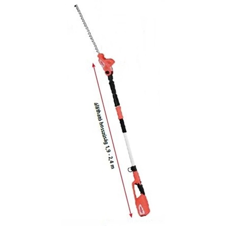 A HECHT 6504 akkumulátoros teleszkópos magassági sövényvágóval biztonságosan tudja rendben tartani akár a 3 méternél magasabb sövényeket is. Nincs többé veszélyes munka a létráról, kényelmesen, a földön állva tudja pontosan igazítani magasra nőtt élősövényét. Az 500 mm munkahosszúságú vágólappal akár 20 mm átmérőjű ágakat is át tud vágni. A gép teljes súlya 4,5kg, ami a használatának módját figyelembe véve nagyon kedvező. A teleszkópos nyelet 119 – 240 cm tartományban tudja beállítani a kívánt méretre, így egy átlagos magasságú személy is akár 3 méteres magasságig képes vele dolgozni. A meghajtott vágólap természetesen állítható, a sövények tetejének vágásakor akár 90° szögig is meg lehet dönteni. Ugyanakkor 30° szögbe is lehet állítani, így az alacsony dísznövényeknél hajlongás nélkül tud dolgozni.