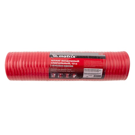 A 10 m hosszú, gyorscsatlakozós Matrix 57004 spirális légtömlő a pneumatikus szerszámok kompresszorhoz való csatlakoztatására szolgál. Könnyű polietilénből készült, melynek köszönhetően még a hosszú távú munkavégzés sem okoz fáradtságot. Spirál alakú, így munka után nem kell csavarni. A karmantyú hasznos az autószervizben, lakatos műhelyben, valamint a befejező munkák során.