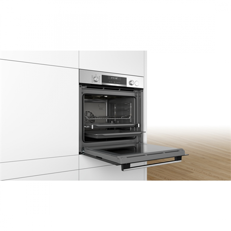 Önállóan beépíthető sütő AddedSteam gőzfunkcióval – Serie6 – nemesacél – 71 l sütőtér – 10 funkció – 3D hőlégbefúvás – Energiaosztály: A – EcoClean hátfal – AutoPilot30 – 1-szintű szintfüggetlen teleszkópos sütősín – LCD kijelző érintőgombokkal – Elektronikus óra – Gyerekzár – Gyorsfelfűtés – Süllyeszthető gombok