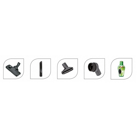 - Tartozékok: padló- és szőnyegfej, résszívó, reluxa és kárpit tisztító kefe, légfrissítő