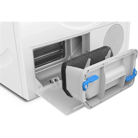 A szárítógép kondenzátorszűrőjének tisztítása bosszantó lehet, de az EasyClean szűrők egyszerűvé és könnyeddé teszik ezt a feladatot. Ez a funkció biztosítja a hatékony szárítást, miközben a karbantartás gyerekjátékká válik. A hőcserélő előtti szivacsszűrő hatékonyan felfogja a szöszöket és megakadályozza az eltömődést, így nincs szükség magának a hőcserélőnek a közvetlen tisztítására. Jelzést követően egyszerűen vegye ki a szűrőt, öblítse ki, majd helyezze vissza. Élvezze a tökéletesen száraz ruhákat minimális erőfeszítéssel.