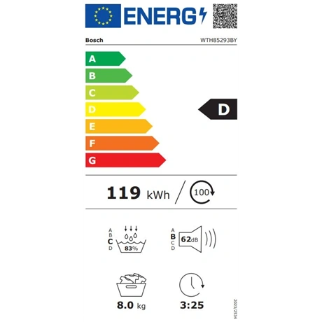 - Maximális kapacitás (kg) (EU 2017/1369): 8.0 kg