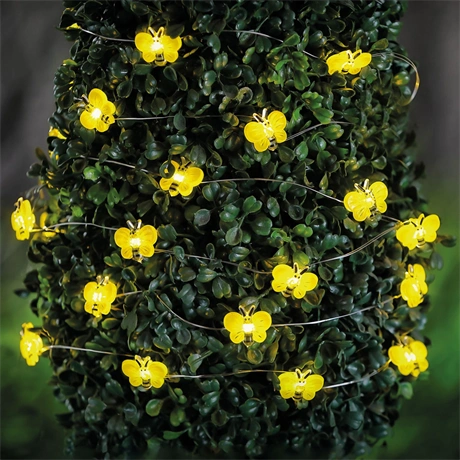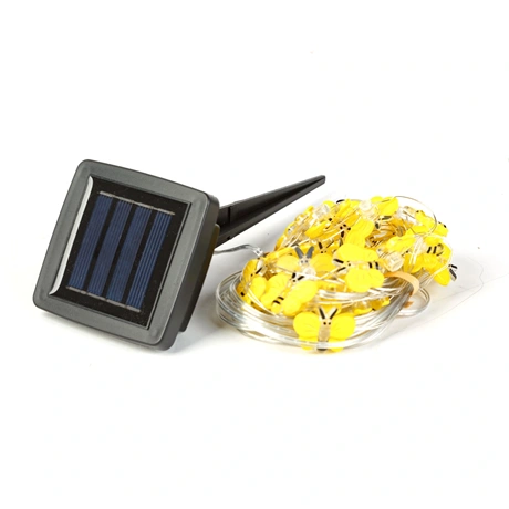 25 db méhecskéből álló napelemes lámpa szett, amely varázslatos hangulatot teremt bármely kertben. A kis méhecskéből melegfehér LED-ek világítják meg, ezzel teremtve kellemes hangulatot. A nap folyamán a szolár panel a napfényt elektromos árammá alakítja és feltölti a beépített akkumulátort. Szürkületkor a termék automatikusan bekapcsol, napfelkeltekor pedig ki. Ideális lehet bármilyen kertben, bokrok, fák, virágoskertek egyedi és különleges dekorálására.