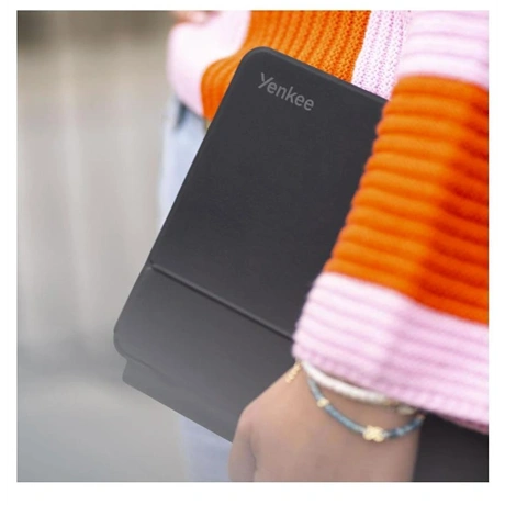 iPad Yenkee YBK 1200 tok iPad Pro 11/Air készülékhez A csomagban mindent megtalálsz, amire szükséged van – egy vezeték nélküli billentyűzetes tokot, egy felhasználói kézikönyvet, amely végigvezet az összes funkción, és egy USB-C kábelt a beépített akkumulátor kényelmes töltéséhez. Csak nyisd ki a dobozt, készítsd elő az iPad-edet, és párosítsd a billentyűzettel. Ezután máris gépelhetsz, dolgozhatsz, videókat nézhetsz, vagy csak böngészhetsz az interneten. Automatikus alvás/ébresztés Anyagok: ABS műanyag + PU bőr + fém zsanér + üvegszálas panel Bluetooth 5.0 chip LED bekapcsolásjelzővel Csendes billentyűk ollós mechanizmussal + PU foltálló bevonat Mágneses tartó 40-137°-os tartószöggel Ötpontos érintés + iOS gesztus támogatás Multimédiás billentyűparancsok + színes billentyűzet-háttérvilágítás Tápellátás TYPE-C-n keresztül Akkumulátor: 500 mAh Üzemi hőmérséklet: 0-55°C Töltési idő: 2-3 óra Üzemidő: akár 95 óra Készenléti idő: akár 120 nap Billentyűk élettartama: 5 millió billentyűleütés Opcionális testreszabási lehetőségek: nyelvi verziók / LOGÓ / színek / csatlakozások nevei A csomag tartalma: billentyűzet, TYPE-C kábel, kézikönyv, védőfólia