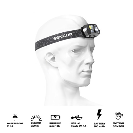 A Sencor SLL 701 fejlámpa nagyon kellemes anyagokból készült, és több órás viselés esetén is kivételes kényelmet garantál. 5 világítási mód, 2 külön gomb a könnyű vezérléshez. Ha a mozgásérzékelőt is aktiválja, akkor csak a kezével kell integetni a zseblámpa be- és kikapcsolásához. Ez ennyire egyszerű. A Sencor SLL 701 fejlámpa csúcskategóriás Li-Ion akkumulátorral működik, és egyetlen töltéssel akár 20 órán át folyamatos világítást biztosít (a töltés USB-C-n keresztül történik, és körülbelül 3 órát vesz igénybe).