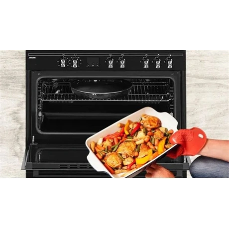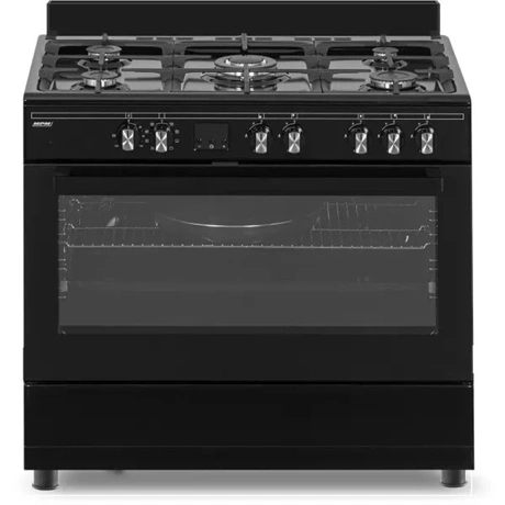 Az MPM-93-KGM-32 gáz-elektromos tűzhely kiváló választás a konyhai gépek területén a design klasszikusok szerelmeseinek. A zongora fekete, króm elemekkel kombinált üvegborítás megteremti az elismert olasz dizájn kvintesszenciáját. A belső tereinkben ritka 90 cm-es szélesség és a 3 részes öntöttvas rostély eredeti ajánlat azoknak, akik értékelik a konyhai gépek egyedi megjelenését és funkcionalitását. A sütő megfelelően megvilágított a LED izzóknak köszönhetően.