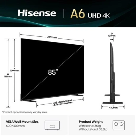 - A televízió szélessége állvánnyal együtt: 1892 mm