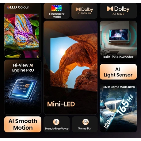 A Mini-LED technológia új szintre emeli a látvány élményét, életre keltve a vibráló fényességet, miközben mély, gazdag árnyékokat tár fel, lenyűgöző tisztasággal.