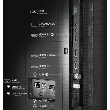 - HDMI3 csatlakozó: HDMI2.1/eARC, ALLM, VRR (165 Hz)