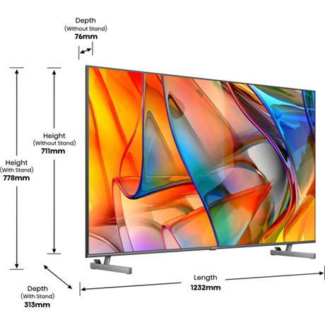 - A televízió szélessége állvánnyal együtt: 1232 mm