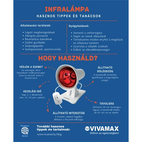 Az infralámpa mélyre hatoló infravörös melege ellazítja az izmokat és serkenti a vérkeringést.
