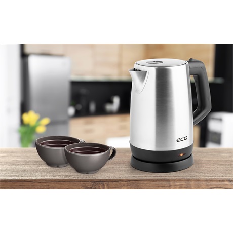 Az ECG RK 1742 Puro rozsdamentes acél elektromos vízforralóval a napi tea, kávé és egyéb italok elkészítése gyerekjáték. 1,7 literes hasznos térfogata elegendő az egész család reggeli italához. A problémamentes karbantartás érdekében a fűtőelem alul van elrejtve. A kivehető, mosható szűrő távol tartja a vízkövet.