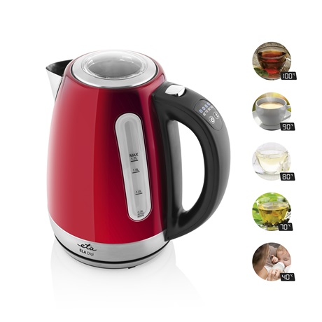 - Elektronikus szabályozás beállítható hőmérséklettel 40, 70, 80, 90, 100 °C (ideális zöld tea, instant italok vagy ételek, bébiételek stb. készítéséhez) • 40 ° C = baba, zabkása • 70 ° C = zöld tea • 80 ° C = fehér tea • 90 ° C = oolong tea, kávé, instant italok • 100 ° C = fekete, gyógyteák