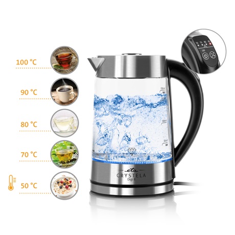 - A vízmelegítés hőmérsékletének folyamatos szabályozása 50, 70, 80, 90, 100 °C (ideális zöld tea, instant italok vagy ételek, bébiételek stb. készítéséhez)
