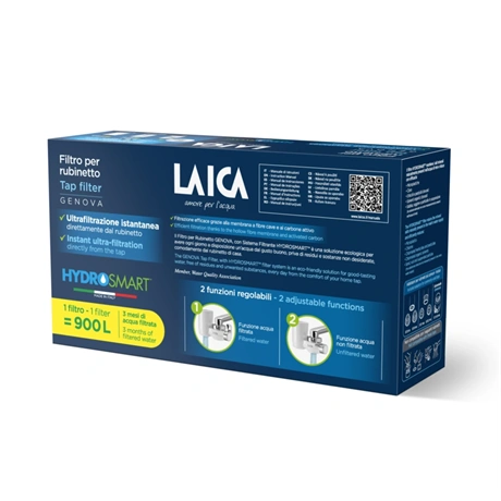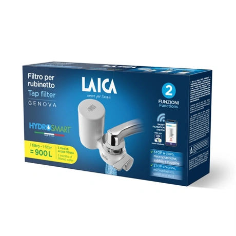 A HYDROSMART ™ technológiának köszönhetően a szűrés az üreges szálmembránnak és a szűrőben lévő aktív szénnek köszönhetően azonnal és hatékonyan történik. A HYDROSMART ™ szűrő 100% -ban Olaszországban van gyártva, és 900 liter víz megszűrésére alkalmas, ami 3 hónap szűrt vízzel egyenlő.