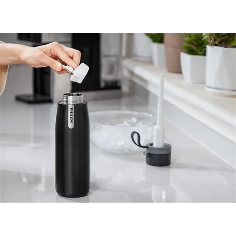 Csak helyezze be a szűrőt a szívószálba, majd helyezze vissza a szívószálat a fedélre, mielőtt visszacsavarná a fedelet a palackra. Kortyoljon egyet, és élvezze!